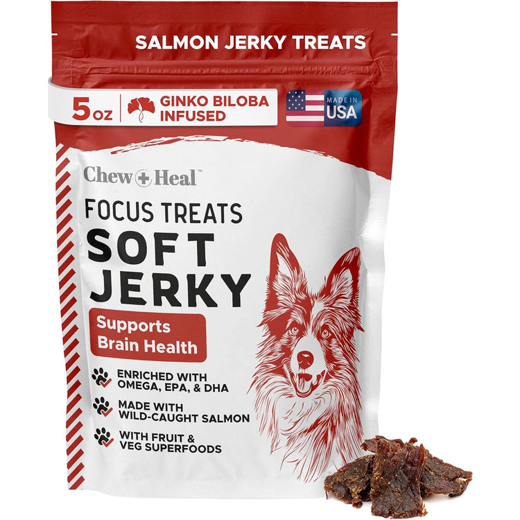 Give your furry friend a tasty and healthy treat with Chew + Heal Focus Wild Alaskan Salmon Limited Ingredient Soft Jerky Dog Treats. Made with wild-caught Alaskan salmon as the primary ingredient, these treats are rich in omega-3 fatty acids that support brain function and overall health. But that’s not all, there’s also a blend of natural superfoods like carrots, blueberries, cranberries, pumpkin, flaxseed, and ginkgo biloba to enhance the benefits. These treats are a testament to our belief in the power of natural nutrition for furbabies to lead healthier and happier lives. Plus, they are made in the USA and perfect for pups of all ages, including puppies and seniors. With no wheat, corn, soy, chicken, beef, artificial flavors, colors, or preservatives, these treats are a great choice for furry friends with sensitivities.