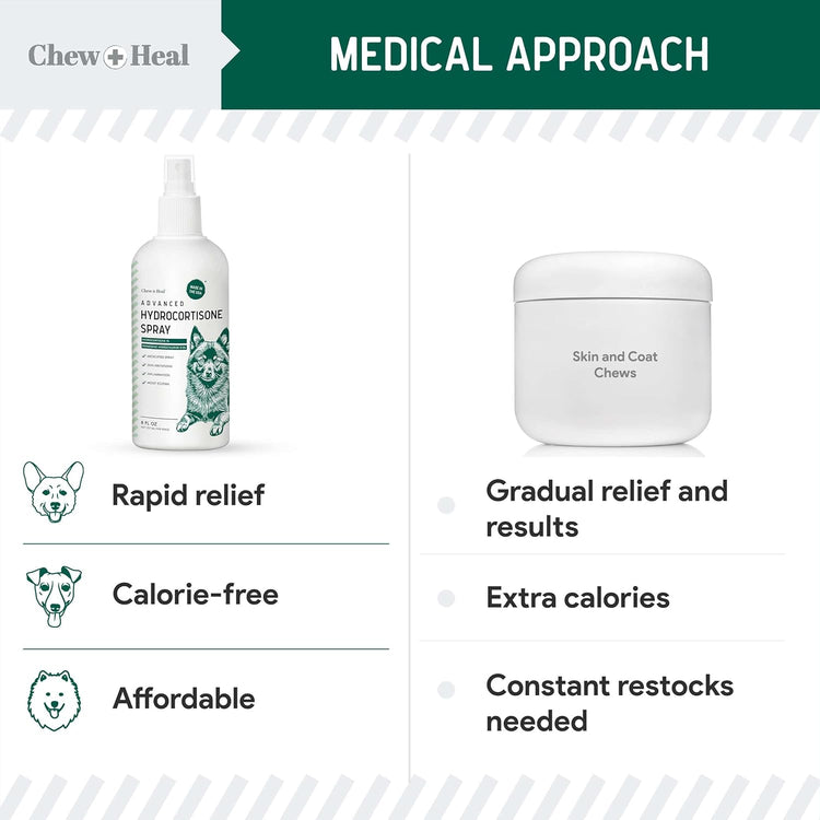 Pet parents, help your furry friend find relief from skin irritations and itching with Chew + Heal Advanced Hydrocortisone Medicated Wound Care Spray for Dogs. This professionally formulated topical solution contains hydrocortisone 1% and pramoxine hydrochloride 0.5%, two powerful ingredients known for their anti-inflammatory and anti-itch properties. Together, they provide targeted relief to reduce irritation and improve your dog’s skin comfort. It also includes hydrolyzed oats and PEG-75 lanolin to support skin hydration and barrier function. Made in the USA, this spray can be used up to three times daily or as directed by a licensed veterinarian.