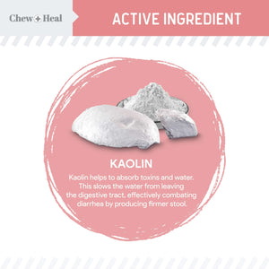 - Kaolin, the active ingredient, helps absorb toxins and water to promote firm stools and aid in diarrhea relief.