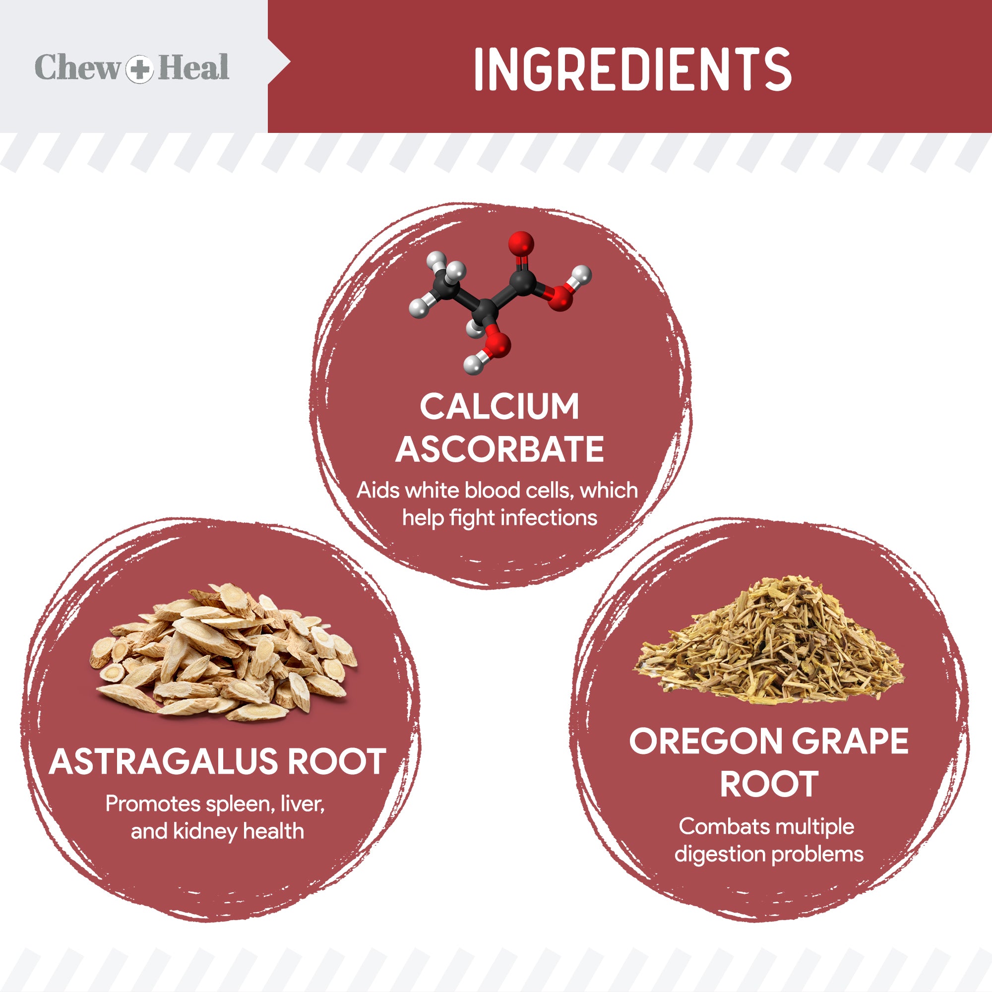 • Provides your dog antioxidants found in vitamin C and astragalus root.