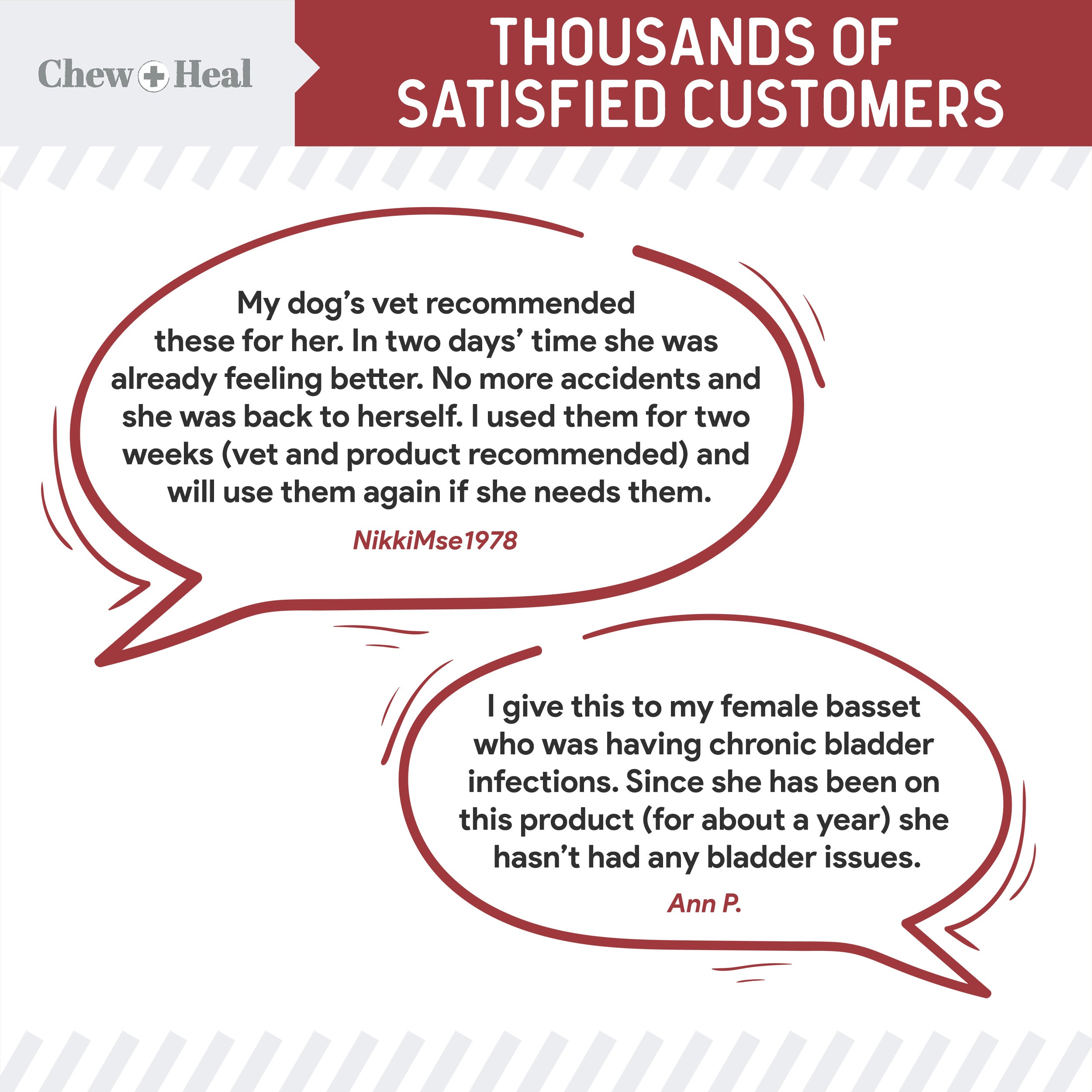 My puppy, now 4 months came from a not so super clean place. She is my 1st female and I noticed she is so smart and it was pretty easy to house train her, though I felt like sometime she couldn't help it. It would only be very little liquid after checking with a vet, I was told it was most likely a UTI which can be common in female dogs. I couldn't get an appt for 2 weeks, so I purchased these hoping to help comfort her. Well they did more than that. They actually cured it. I still give her one at night 3 times a week. Now they may make then pee more at first, but they need to in order to get the bacteria out. Great product, great price, and she thinks they're a treat.