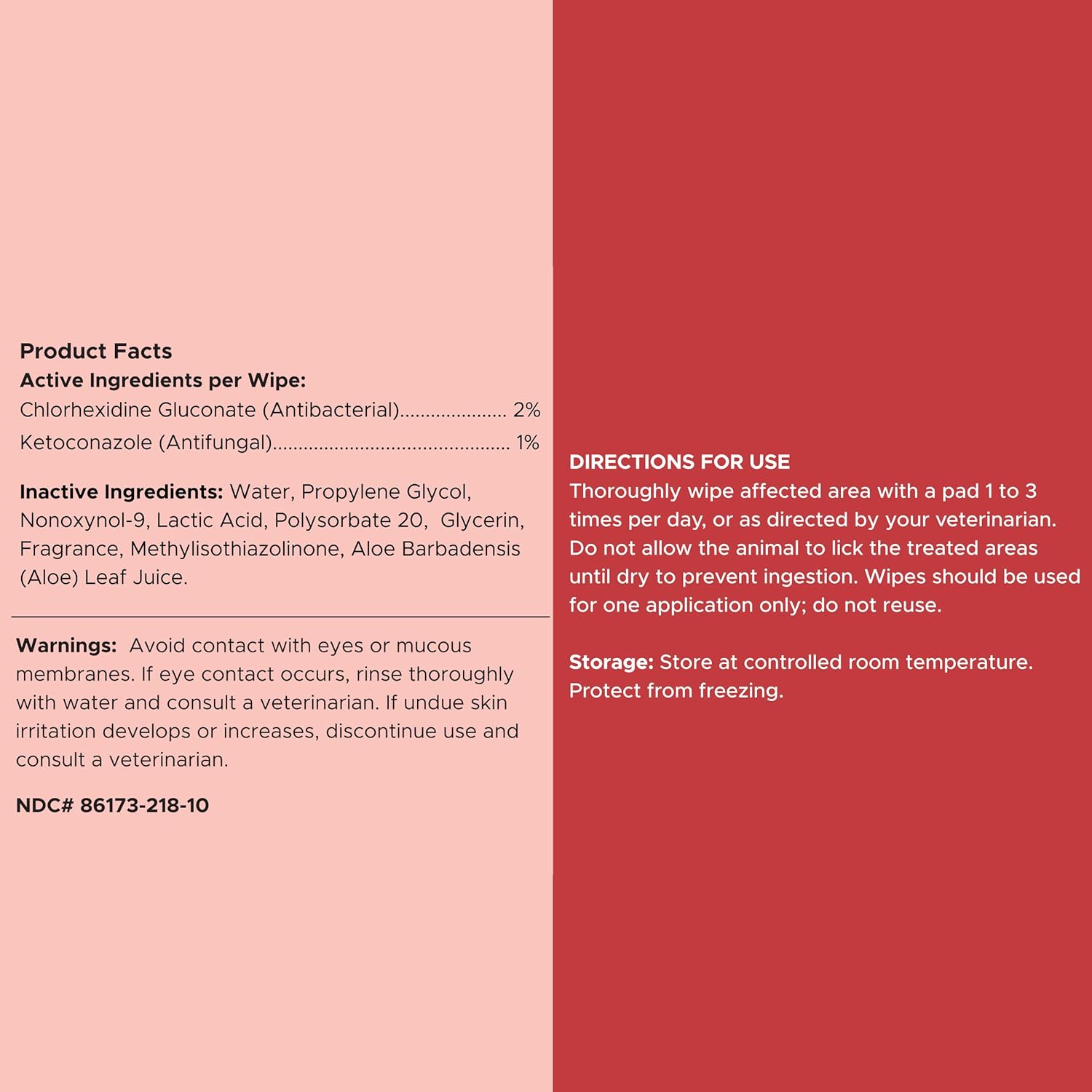 - Each pre-moistened wipe contains a precise combination of chlorhexidine (2%) and ketoconazole (1%) for broad-spectrum antimicrobial and antifungal efficacy.