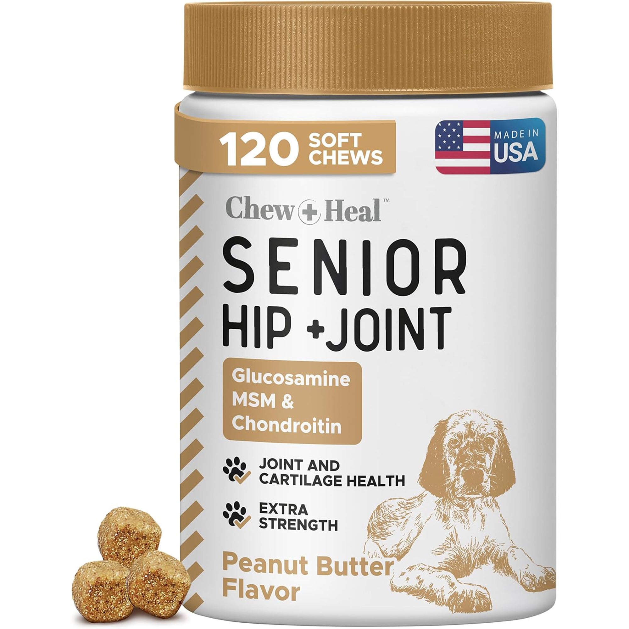 - Glucosamine, MSM, chondroitin, vitamin C, and omega fatty acids work together to support your senior dog’s joint and cartilage health.