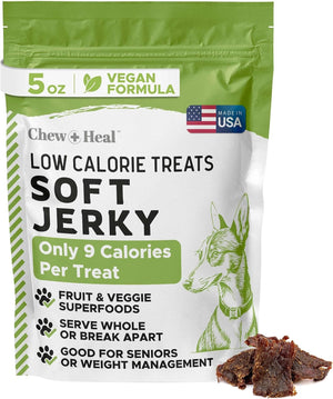 Indulge your furry friend without going overboard with Chew + Heal Limited Ingredient Low Calorie Fruit & Veggie Superfoods Soft Jerky Dog Treats. Featuring a nutritious blend of fruits and vegetables, these low-calorie treats are perfect for pet parents seeking a healthy training treat or guilt-free daily reward. They’re made without any animal proteins or artificial additives and contain just nine calories each, making them suitable for dogs with food sensitivities as well as those on calorie-restricted diets. These treats have a delightfully chewy texture and an irresistible smoky flavor. Plus, they’re packed with nutrients like essential vitamins and minerals, fiber, antioxidants, and omega-3 fatty acids.