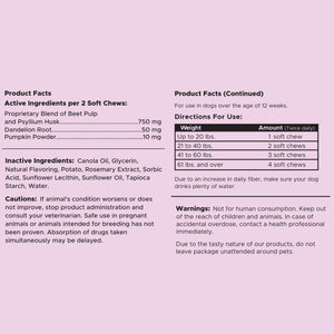 - Digestive dog supplement fosters regular, firm stools—which helps keep your pup’s anal glands from clogging and reduces scooting behavior.