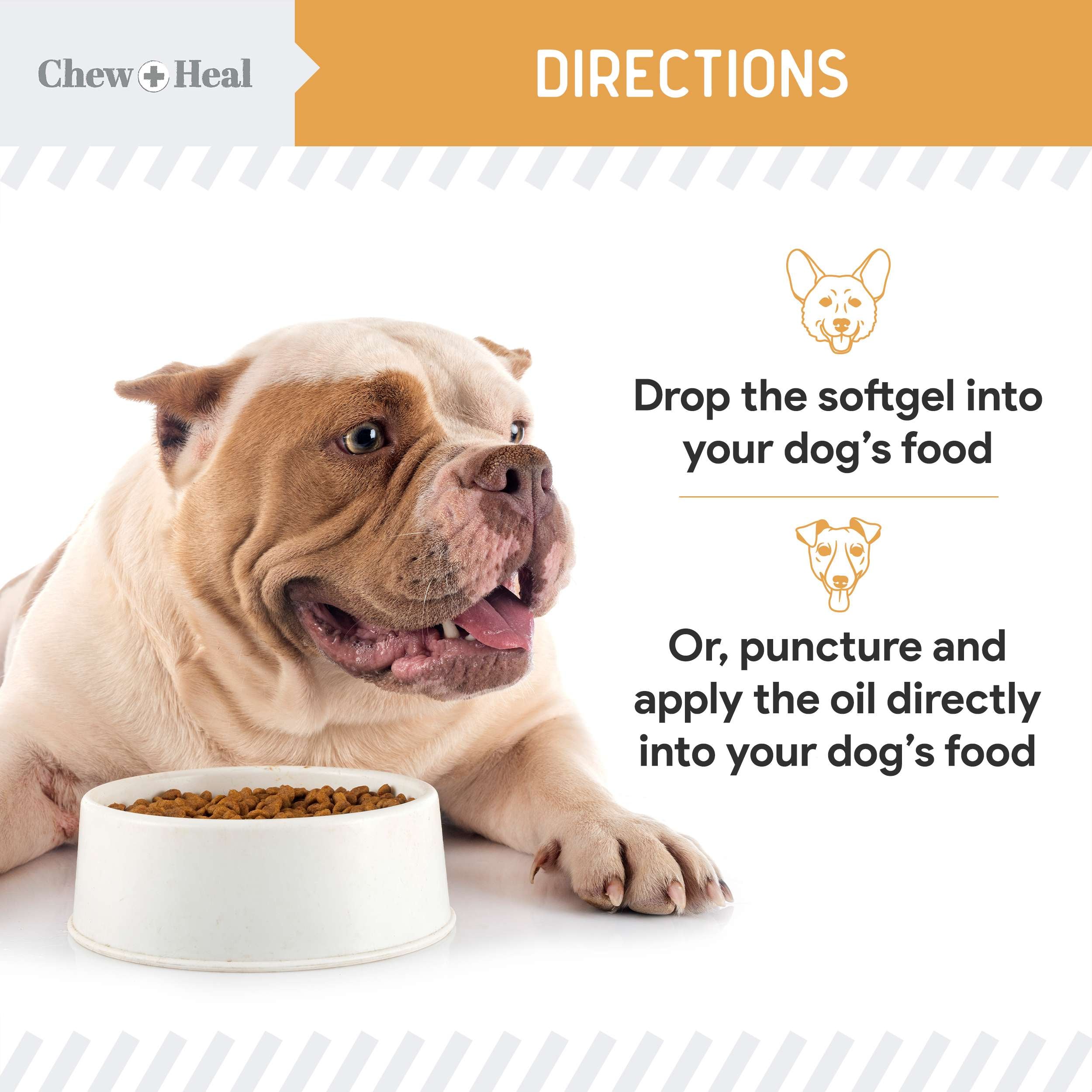 - The bite-sized softgels can be punctured or concealed into your companion’s favorite meal.