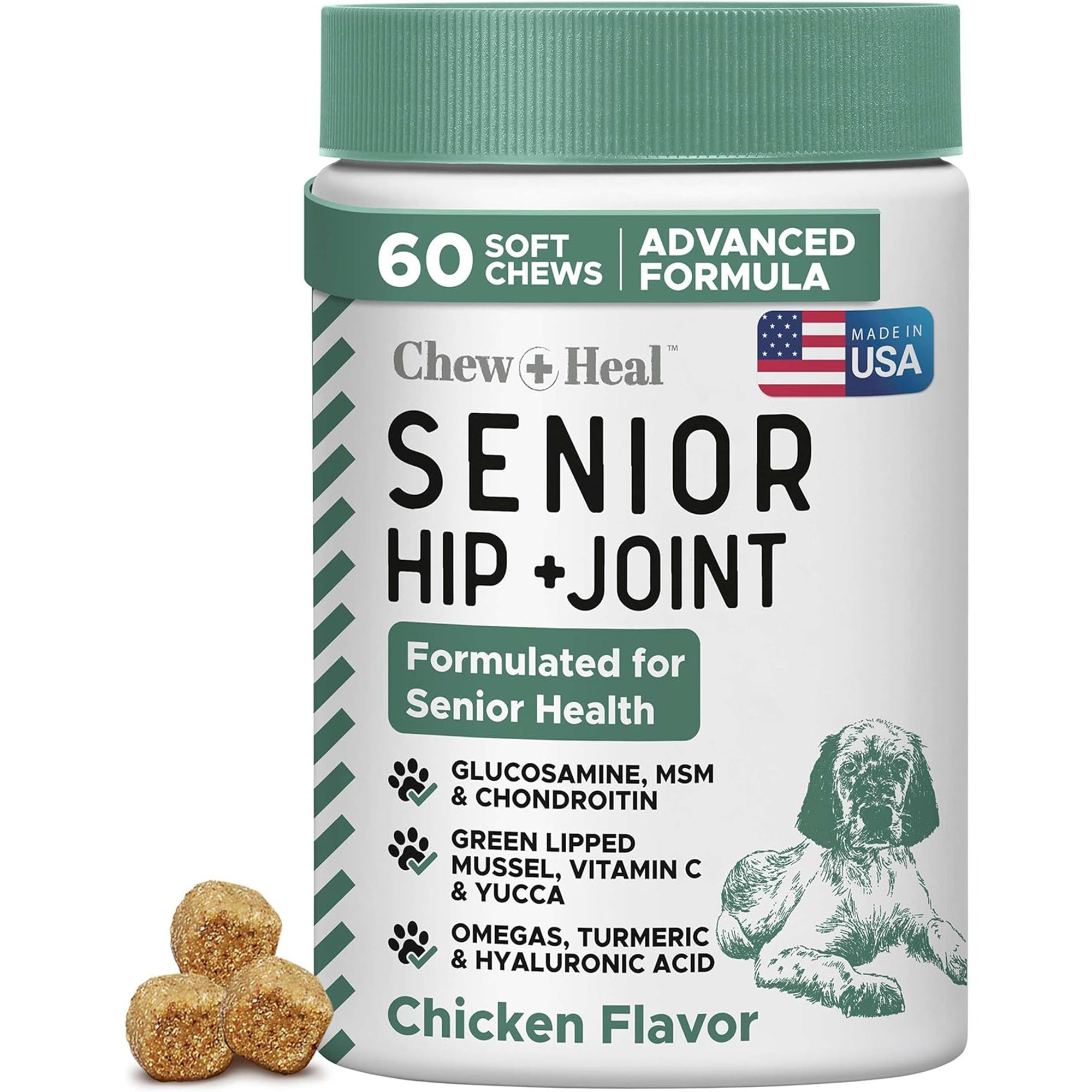 The older we get, the more tender loving care our hips and joints may need. The same is true for your dog, which is why Chew and Heal Senior Hip & Joint Dog Supplement is chock full of the vitamins and minerals your senior dog needs to remain fit as a fiddle. Formulated with glucosamine, MSM, and chondroitin to help reduce pain and inflammation, and increase mobility and joint lubrication Chew and Heal Senior Hip & Joint Dog Supplement is a tasty chew that works to keep your older dog feel young at heart.