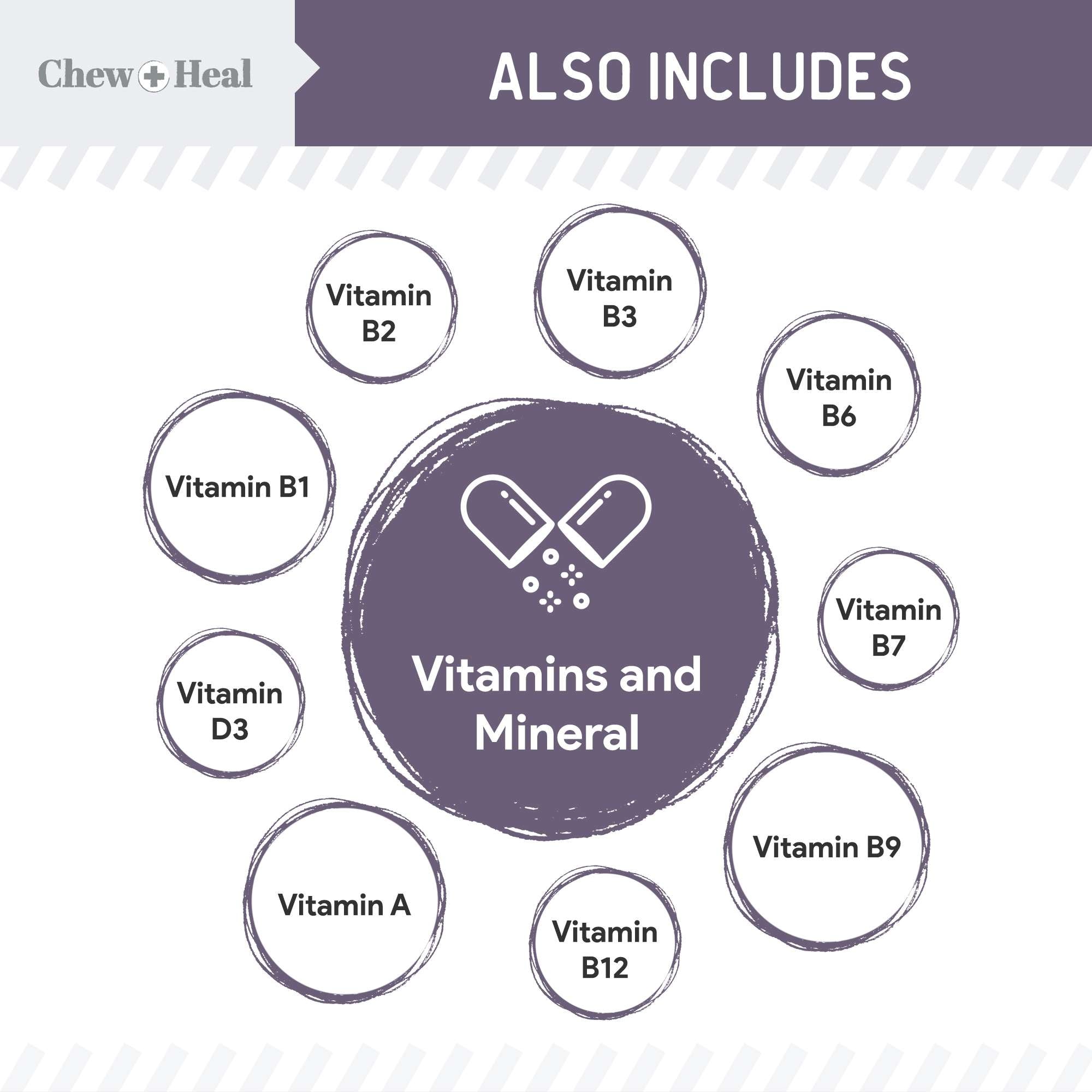 - This recipe features a blend of essential vitamins, including choline, vitamin A, B vitamins, and more, to support comprehensive health.