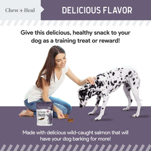- Wild-caught salmon naturally contains omega-3, astaxanthin, zinc, and iron, making it a healthy treat or training reward for your pup.